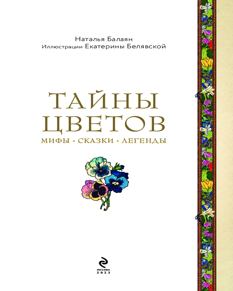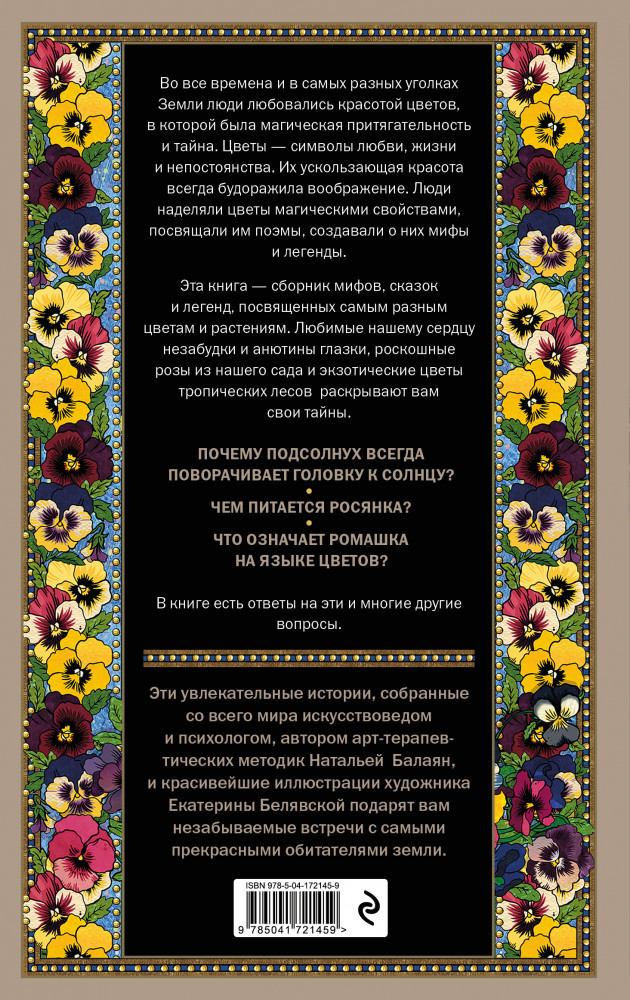 Тайны цветов. Мифы, сказки, легендыВ данный момент этот товар отсутствует в продаже. Возможно, у нас найдется аналогичный или похожий товар здесь. Серия: Мифы и легенды народов мира Цветы — символы любви, жизни и непостоянства. Их ускользающая красота всегда будоражила воображение. Люди наделяли цветы магическими свойствами, посвящали им поэмы, создавали о них мифы и легенды. Эта цветная подарочная книга — сборник мифов, сказок и легенд, посвященных самым разным цветам и растениям. Увлекательные истории, собранные со всего мира искусствоведом и исследователем Натальей Балаян, и красивейшие иллюстрации художника Екатерины Белявской подарят вам незабываемые встречи с самыми прекрасными обитателями земли. |