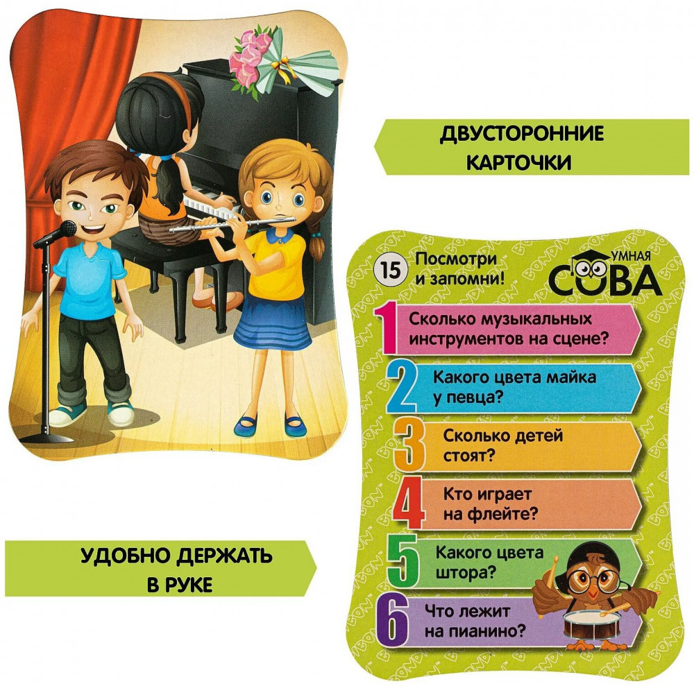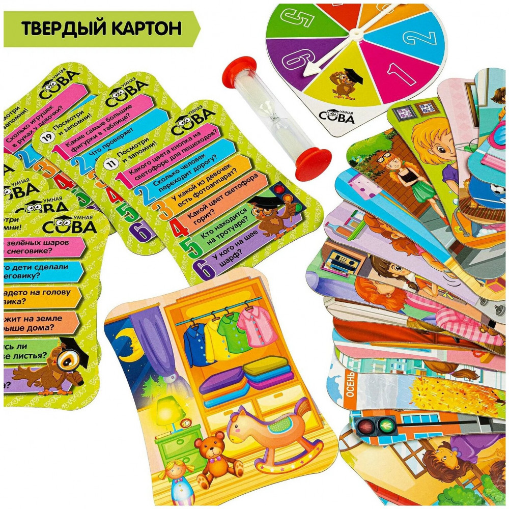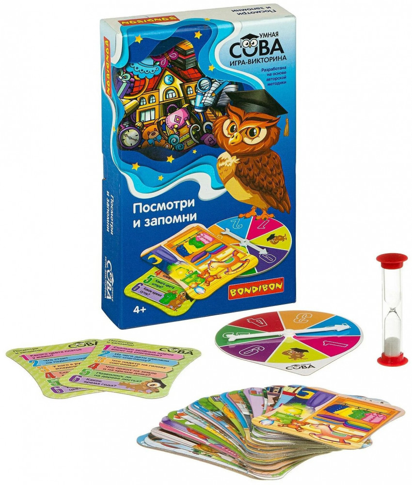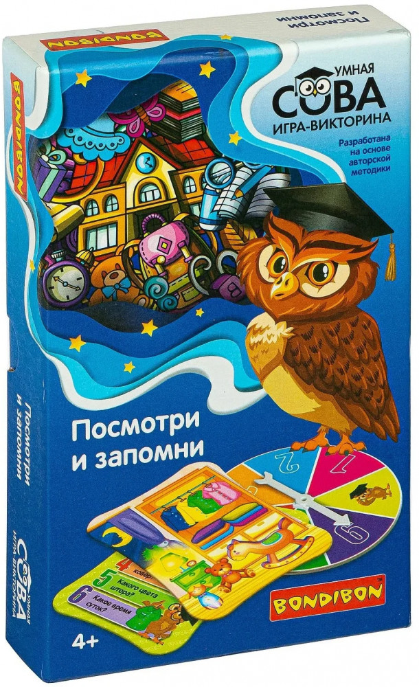 Игра-викторина Умная Сова «Посмотри и запомни» развивает внимательность и память! Викторина предназначена как для самостоятельного времяпровождения, так и для игры в компании! Красочные иллюстрации и каверзные вопросы. Вопросы сформулированы таким образом, что уже при их прочтении у вашего малыша будут закладываться новые знания.