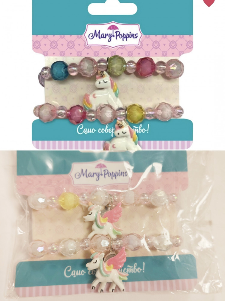 Маленькая принцесса любит красивые украшения? Тогда ей точно понравится набор «Единорог», состоящий из двух браслетов. С помощью модных аксессуаров девочка дополнит свой повседневный или праздничный образ, сделав его ещё более привлекательным. Всем известно, что стиль начинается с деталей, поэтому небольшие эксперименты с их акцентированием позволят сформировать у ребёнка чувство стиля с самого детства.