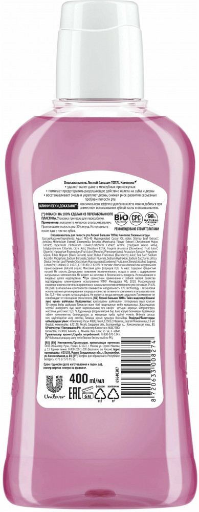 Лесной бальзам Ополаскиватель для полости рта с морской солью и таёжные ягодами