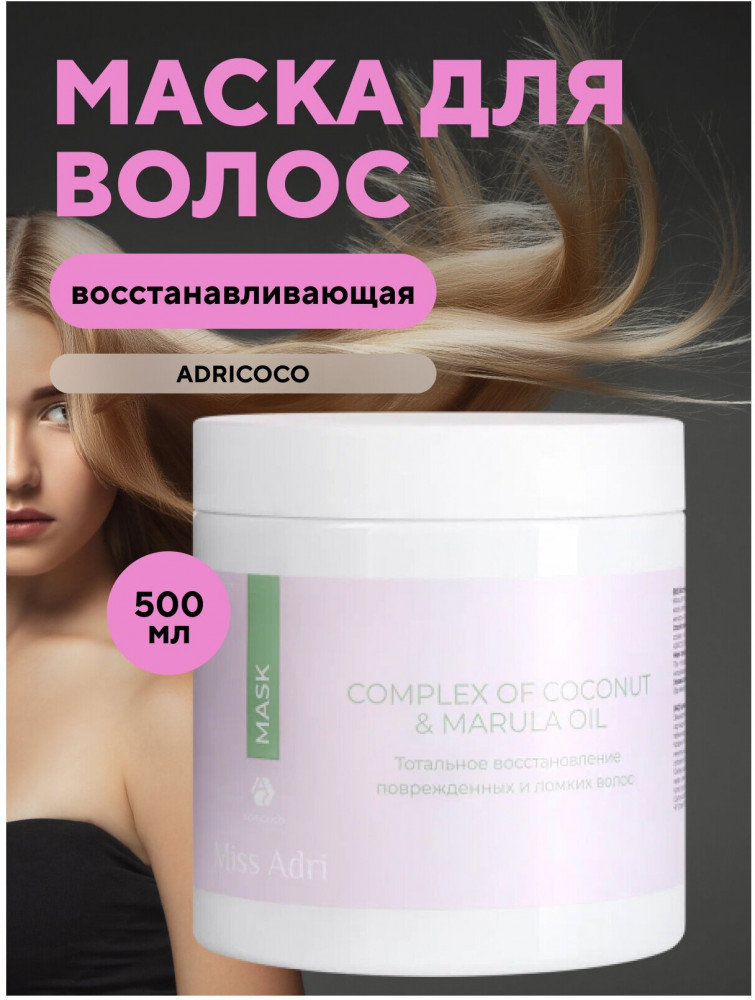 Adricoco Маска для волос восстанавливающая «Complex of coconut & marula oil»