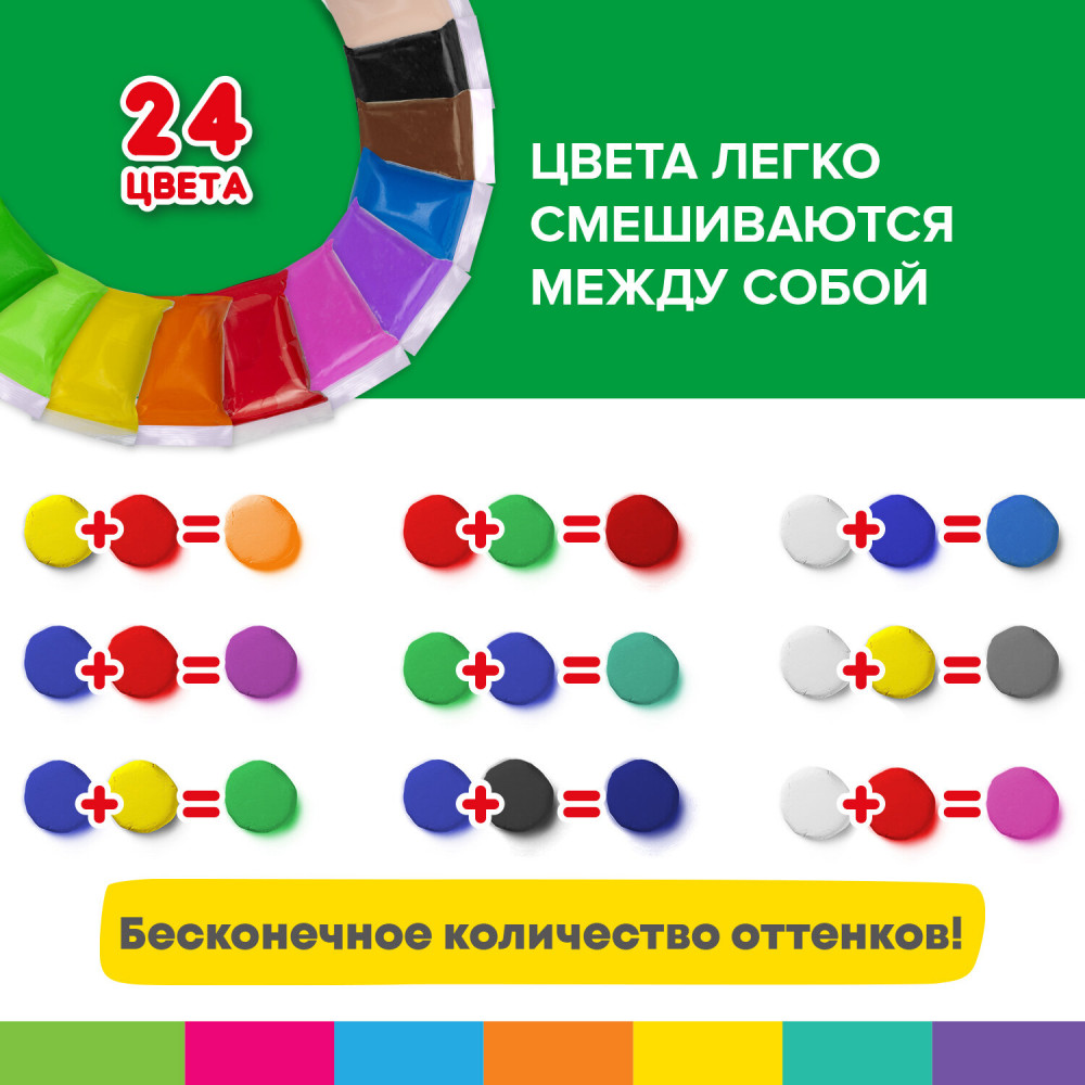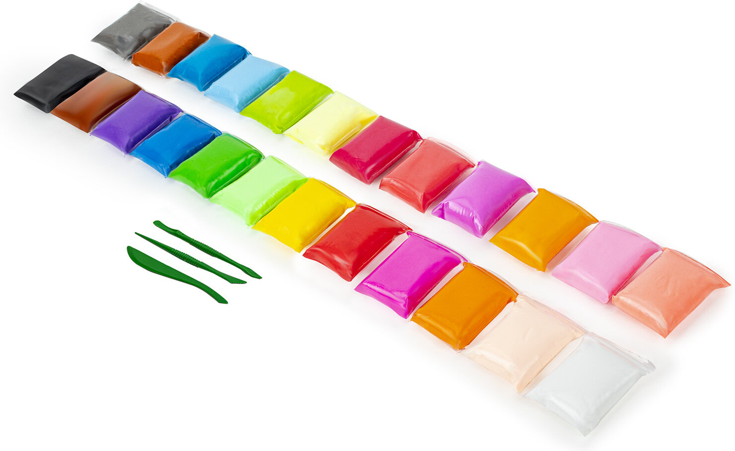 Данный набор включает в себя легкий пластилин высокого качества и три стека, которые помогают легко работать с кусочками пластилина и создавать даже миниатюрные поделки. 24 цвета позволят ребенку создать многоцветную поделку, картину или небольшую скульптуру.