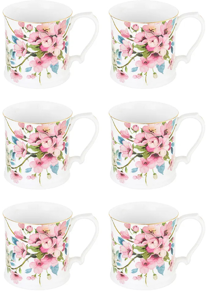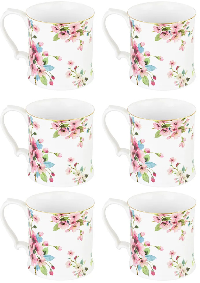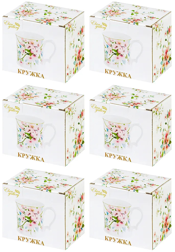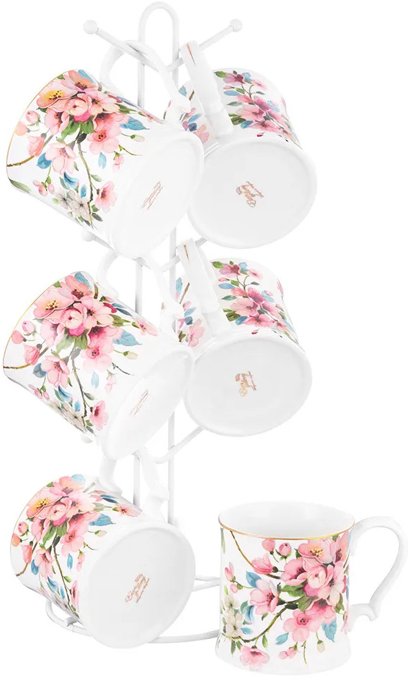 Elan Gallery Набор кружек на подставке «Яблоневый цвет на белом»-20%