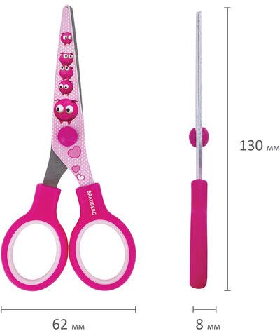 Универсальные ножницы Brauberg «Kid Series» для работы с бумагой и картоном идеально подойдут для детского творчества, а яркий дизайн превратит работу с ножницами BRAUBERG в легкое и увлекательное занятие!