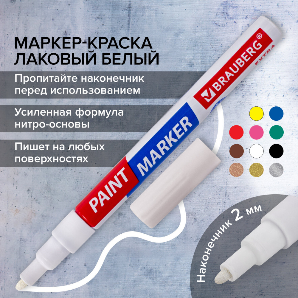Brauberg Маркер-краска лаковый, цвет белый