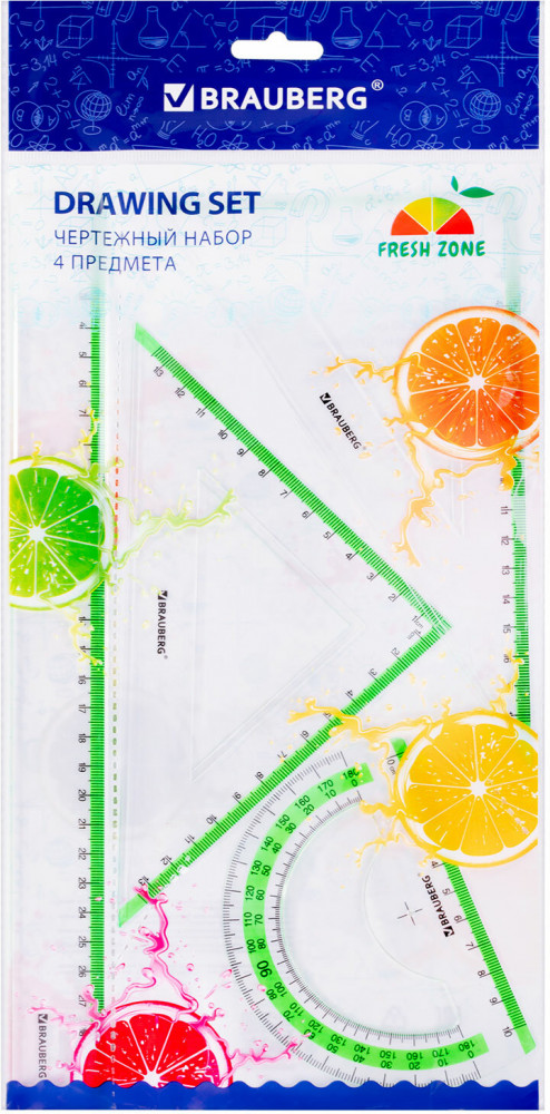 Серия: Fresh Zone Набор чертежный «Brauberg» предназначен для выполнения чертежных и измерительных работ в школе и дома. |