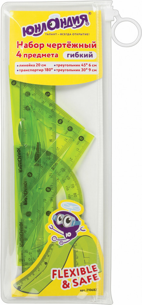 Серия: Flex Гибкий ударопрочный набор чертежных инструментов «Юнландия» предназначен для чертёжных и измерительных работ. |