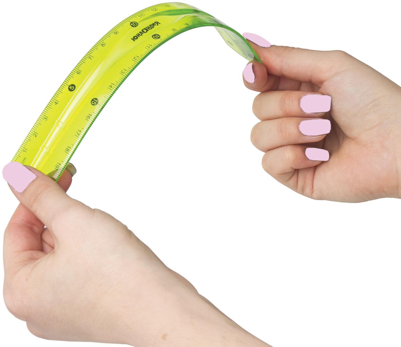 Супер набор! Линейки гибкие, гнутся. Для младшей школы самое то! Заказывала два таких набора, салатовый цвет и голубой(в голубом линейка на 15см).