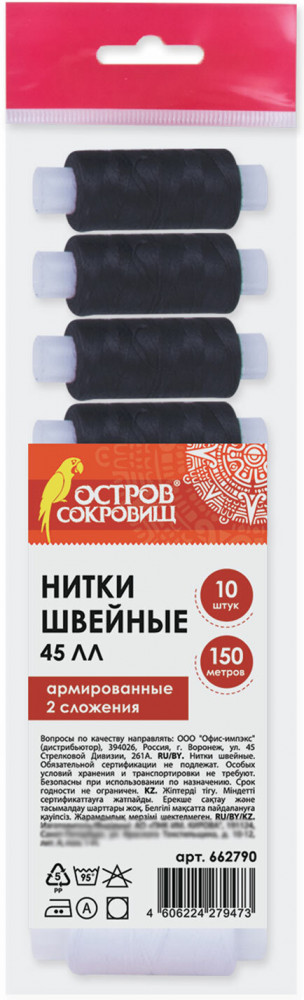 Набор ниток «Остров сокровищ» характеризуется высоким качеством исполнения. Нитки в наборе применяются для всех видов одежды, обладают отличными пошивочными свойствами и подходят как для ручного шитья, так и для всех видов швейных машин. |