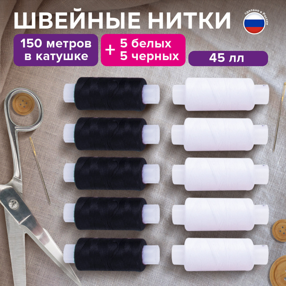 Остров сокровищ Набор ниток швейных, цвет черно-белый микс-20%