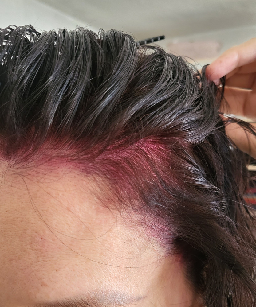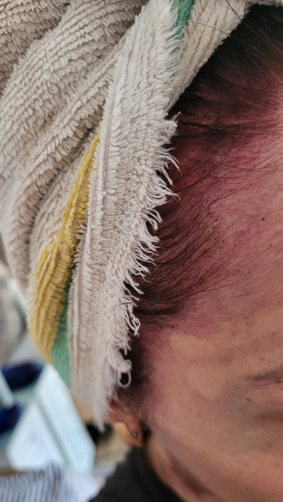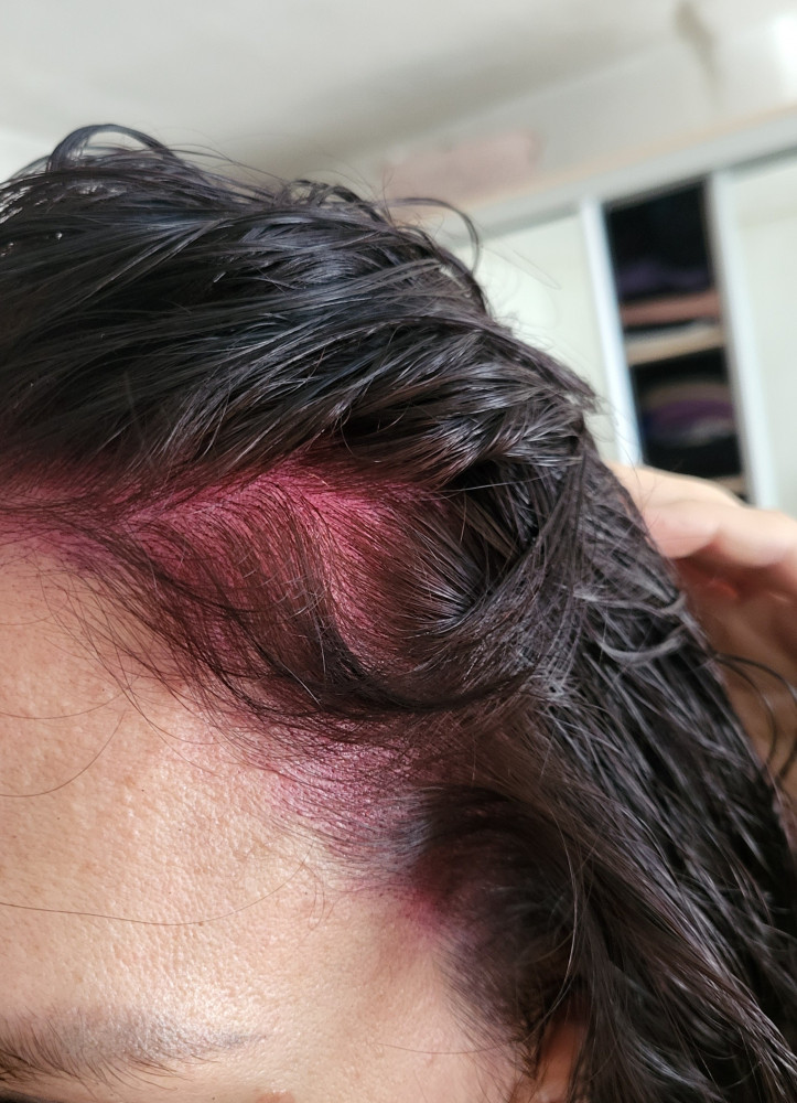 Текстура приятная, наносится легко. Цвет немного ложится на волосы, седину не закрашивает.