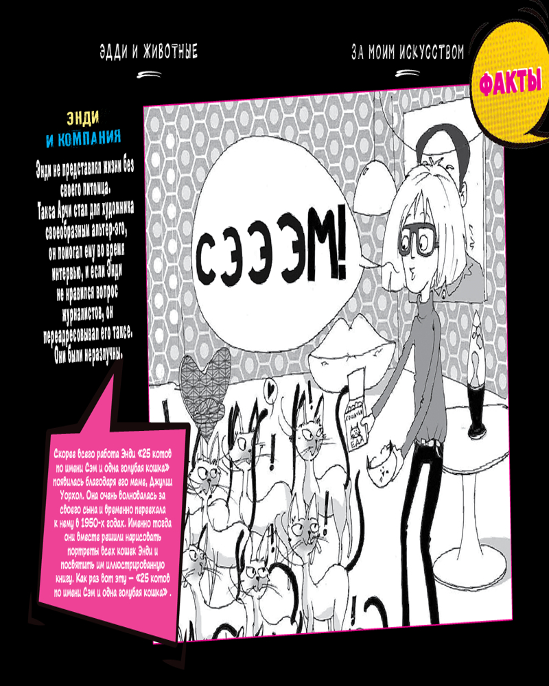 Серия: Суперфакты об искусстве А ты знаешь, что Энди Уорхол сделал предметом искусства банку с супом? Он окружал себя обыкновенными вещами и необыкновенными людьми, придумал поп-арт, который навсегда изменил мир воображения. Его отец работал на шахте, а мама подрабатывала уборкой, что не помешало Энди стать одним из самых влиятельных и богатых людей в мире искусства. |