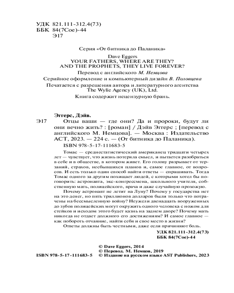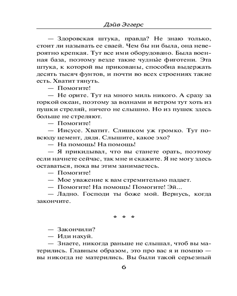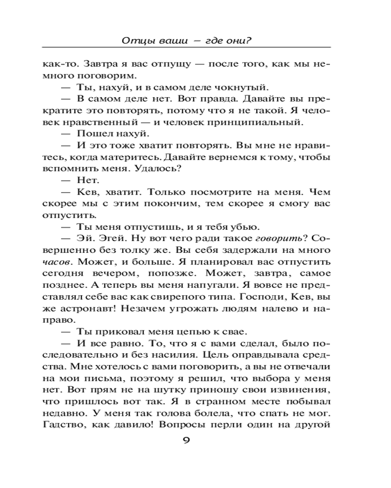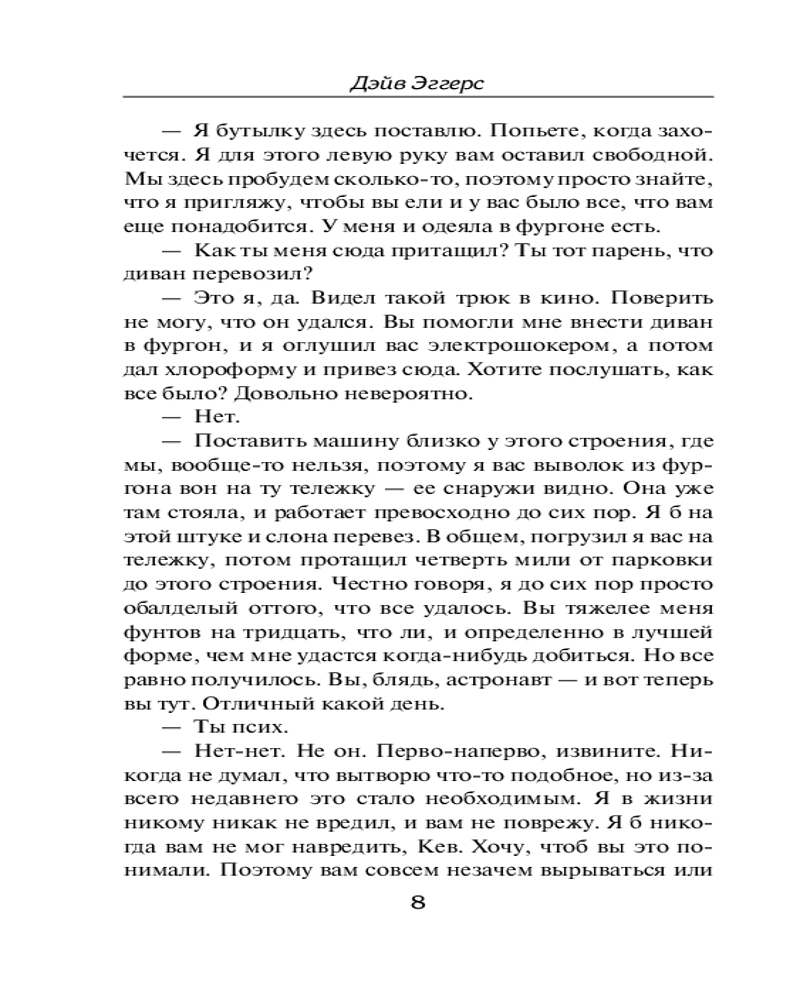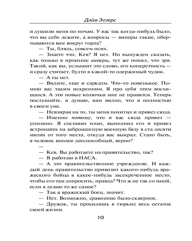 Серия: От битника до Паланика Томас — среднестатистический американец тридцати четырех лет — чувствует, что жизнь потеряла смысл, и пытается разобраться в себе и в обществе, в котором живет. Его голову разрывает от терзаний, страхов, несбывшихся планов и, самое главное, от вопросов. И есть только один способ найти ответы — спрашивать. Тогда Томас одного за другим похищает людей, с которыми хотел бы поговорить: астронавта, экс-конгрессмена, школьного учителя, собственную мать, полицейского, врача и даже случайную прохожую. |