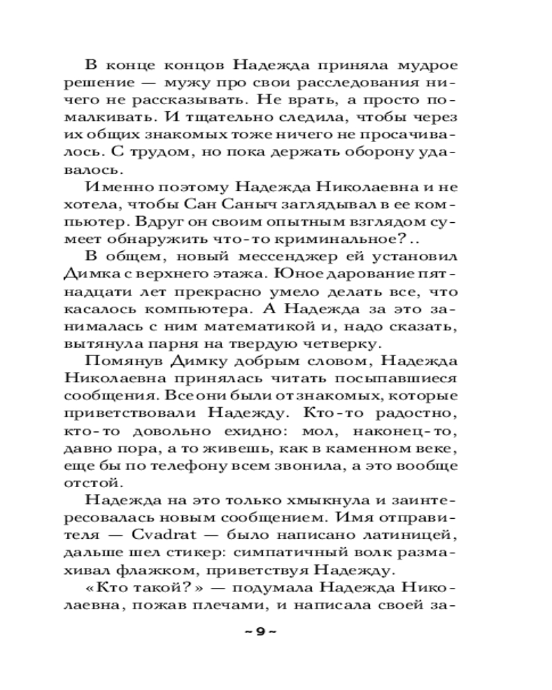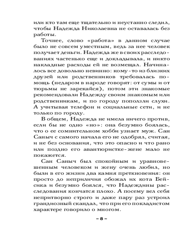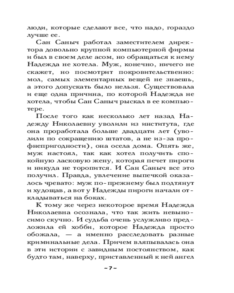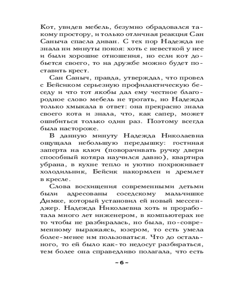 За несколько лет упорной работы Наталья Александрова успела написать около шестидесяти романов, в которых на пятнадцати тысячах страниц появилось примерно пятьсот второстепенных героев, восемь главных героев и шесть наиглавнейших - кошек, собак и... |