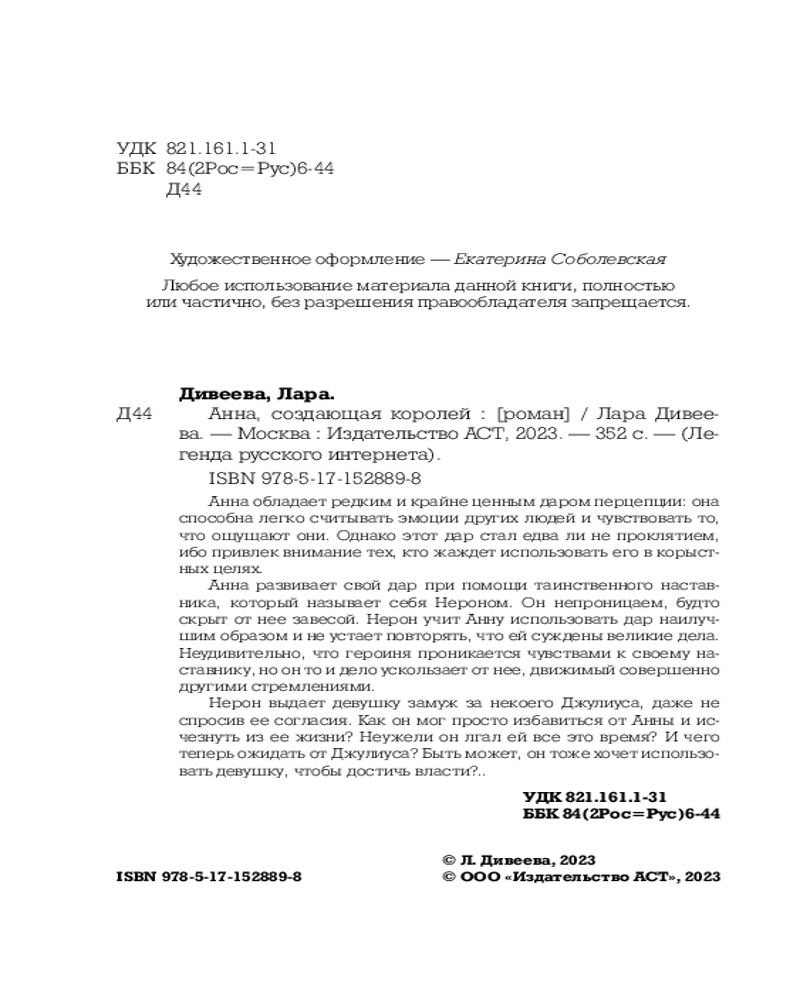 Серия: Легенда русского Интернета Анна обладает редким и крайне ценным даром перцепции: она способна легко считывать эмоции других людей и чувствовать то, что ощущают они. Однако этот дар стал едва ли не проклятием, ибо привлек внимание тех, кто жаждет использовать его в корыстных целях. |