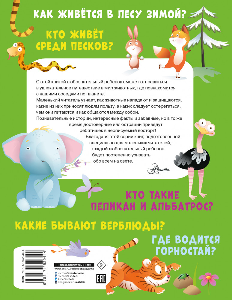 В данный момент этот товар отсутствует в продаже. Возможно, у нас найдется аналогичный или похожий товар здесь. Серия: Моя первая энциклопедия обо всем на свете Эта книга понравится каждому ребёнку, ведь она отправит его в увлекательное путешествие по удивительному миру животных, расскажет об их местах обитания, образе жизни и повадках.