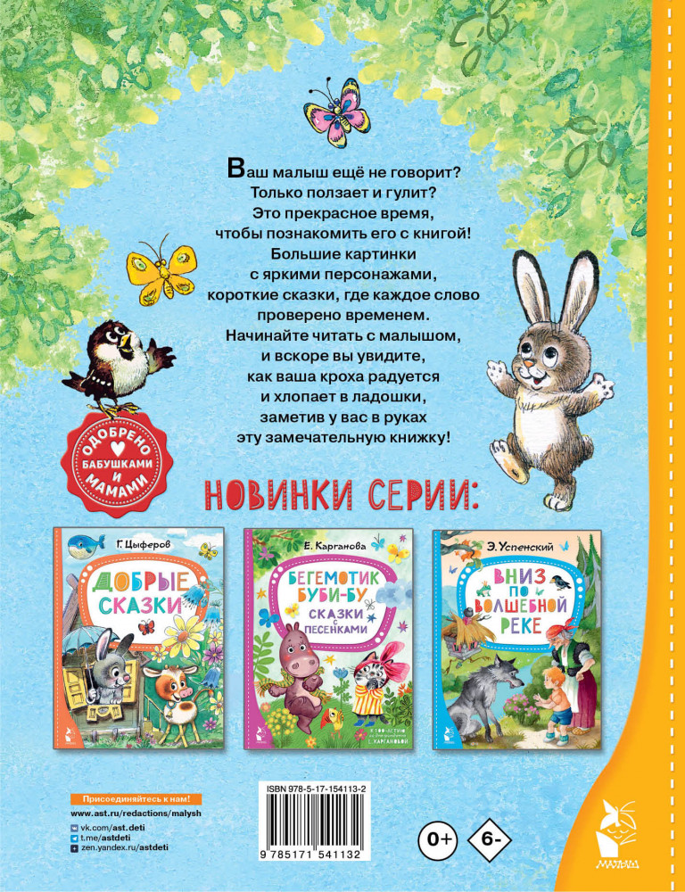 В данный момент этот товар отсутствует в продаже. Возможно, у нас найдется аналогичный или похожий товар здесь. Серия: Лучшие сказки «Малыша» В книгу «Малышам от 1 до 3 лет» вошли произведения для детей от года до трёх лет. Это русские народные сказки, произведения К. Чуковского, С. Маршака, В. Бианки, В. Сутеева и других знаменитых сказочников. Короткие тексты и крупные яркие картинки заинтересуют ребёнка и помогут ему научиться любить книгу и чтение.