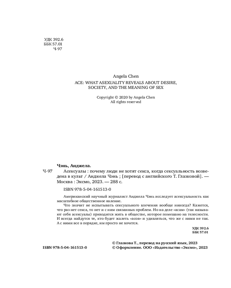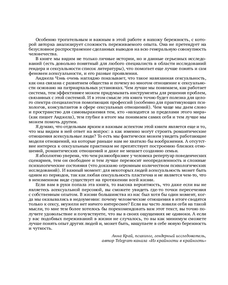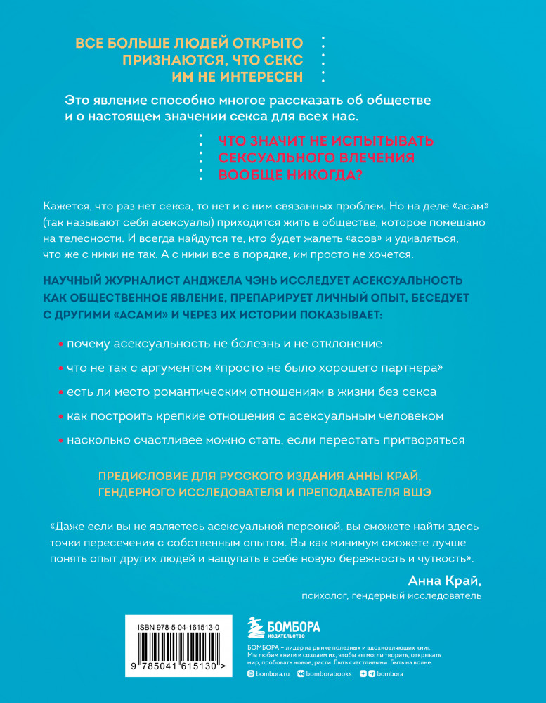 Асексуалы. Почему люди не хотят секса, когда сексуальность возведена в культВ данный момент этот товар отсутствует в продаже. Возможно, у нас найдется аналогичный или похожий товар здесь. Серия: Сексуальный интеллект. Книги, которыми стоит заняться Все больше людей открыто признаются, что секс им не интересен. Это явление способно многое рассказать об обществе и о настоящем значении секса для всех нас. |