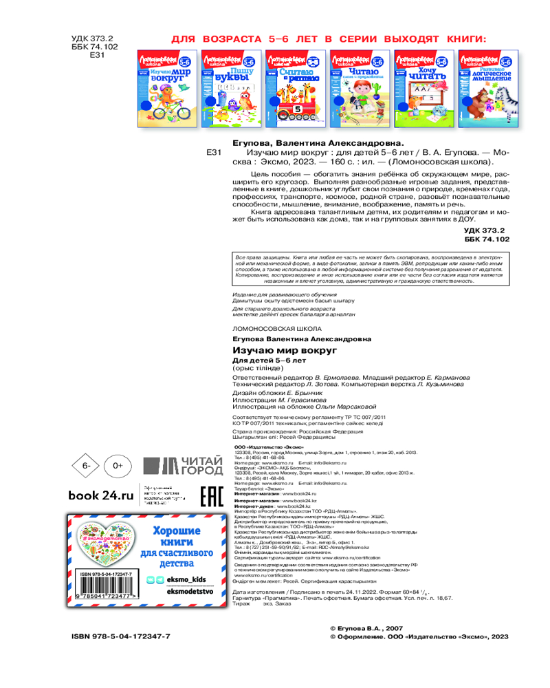 💳 Оплатить за товар можно при получении 🇰🇿 Есть бесплатная доставка по Казахстану 🎁 Копите бонусы с каждой покупки Серия: Ломоносовская школа (новое оформление) Пособие станет отличным помощником родителям и педагогам в подготовке ребенка к школе. Проверенная на практике эффективная методика будет способствовать развитию у дошкольника кругозора и познавательных способностей. |