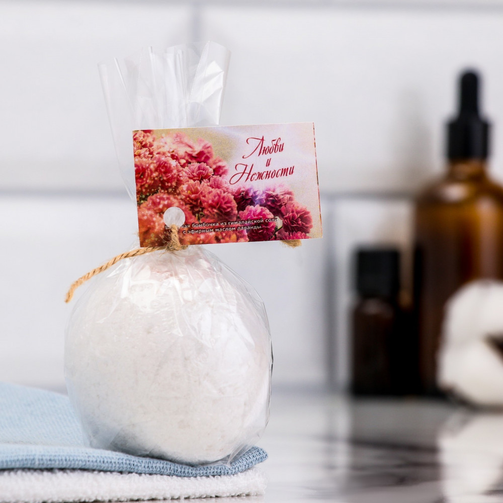 Бомбочка для ванны шипучая из гималайской соли с эфирным маслом лаванды «Любви и нежности» | 8 Марта | Добропаровъ