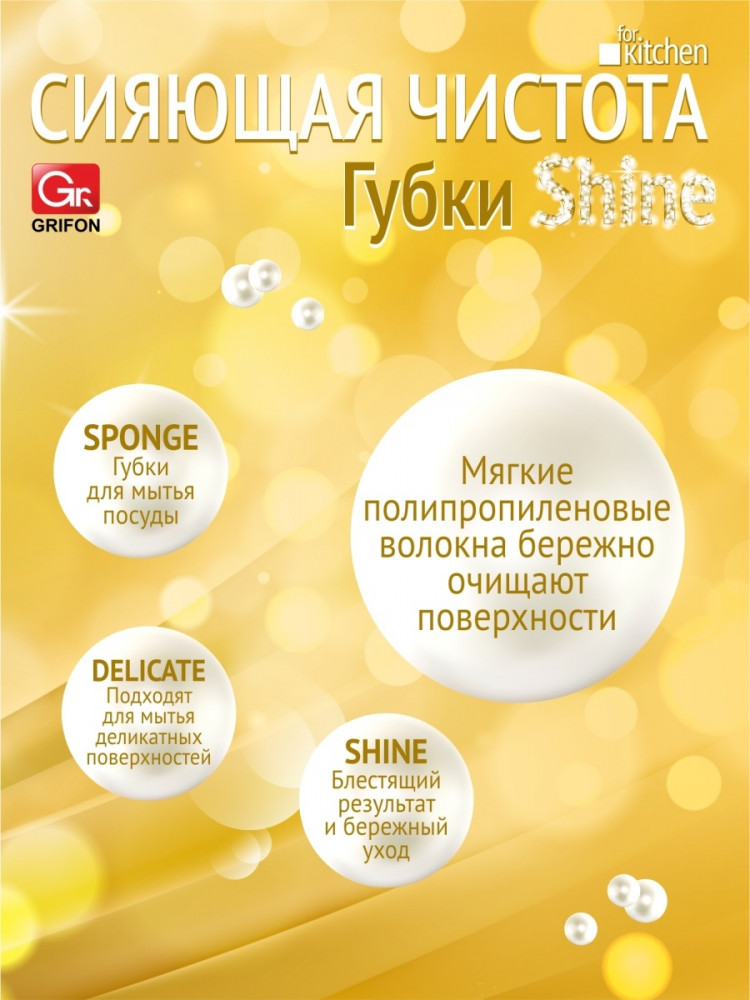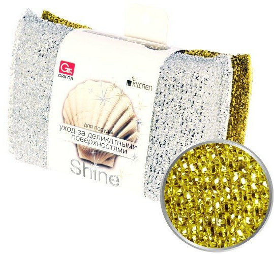 Grifon Набор губок для ухода за деликатными поверхностямиВ данный момент этот товар отсутствует в продаже. Возможно, у нас найдется аналогичный или похожий товар здесь. Grifon Shine — губки для ухода за деликатными поверхностями. Мягкие полипропиленовые волокна бережно очищают поверхность, а высококачественный поролон, который находится внутри, обеспечивает возникновение пены от моющих средств. Внутри каждой обечайки находятся губки с серебристым и золотистым цветом волокон. Губки Grifon Shine предназначены для мытья посуды из деликатных материалов: акрила, антипригарных покрытий, стекла, фарфора, хрусталя и полированной стали. Пенополиуретановое волокно аккуратно убирает частички загрязнений с поверхности, не царапая её |