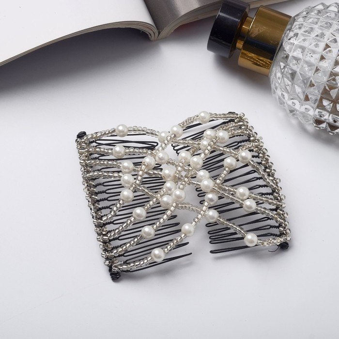 • закрепите одну половину заколки (гребень) в волосах, с одной стороны;