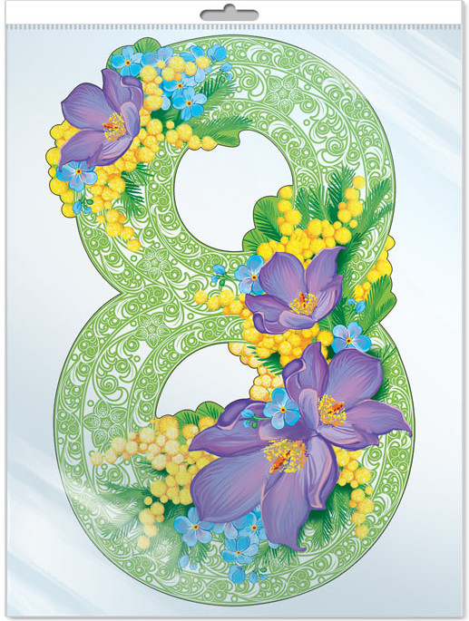 Плакат вырубной «Восьмерка. Зеленый орнамент с крокусами»+13
