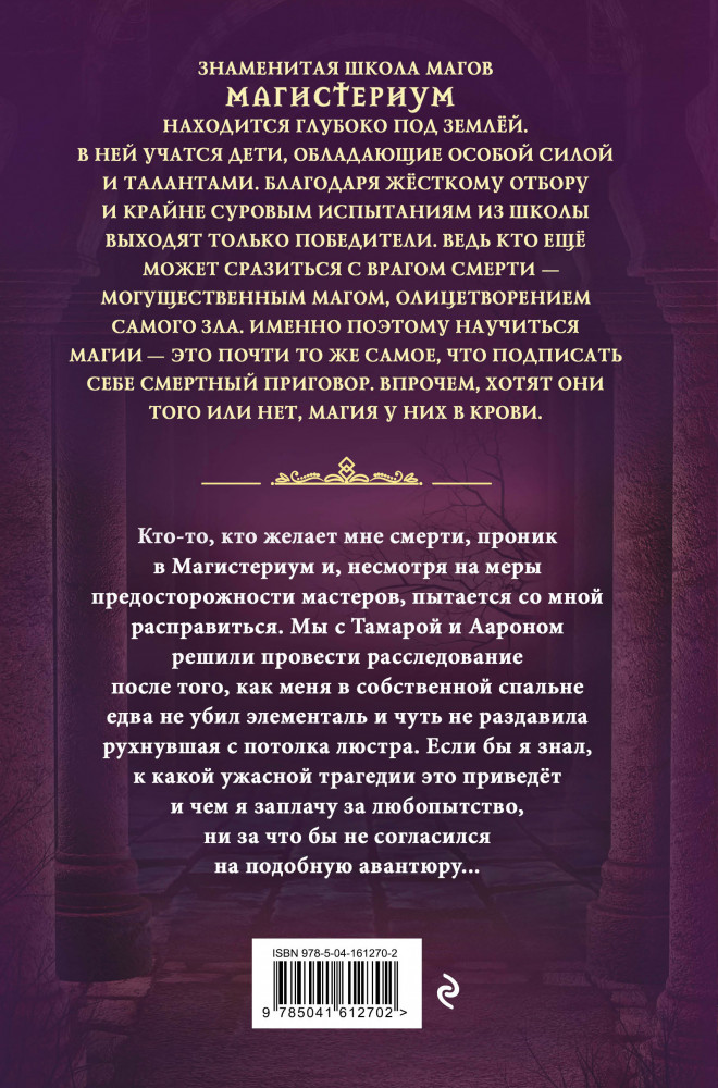 Серия: Детск. Магистериум. Новое оформление «Магистериум» — серия в жанре фэнтези о мальчике по имени Коллам Хант, попавшем в школу магии. Коллам — далеко не подарок, да и обучение в школе смертельно опасно с самого первого года обучения! |