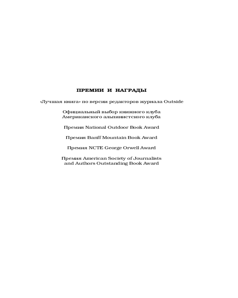 Премия National Outdoor Book Award.
