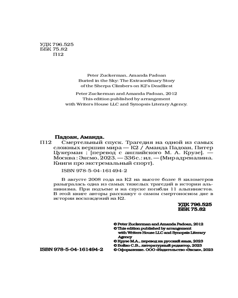 | Смертельный спуск. Трагедия на одной из самых сложных вершин мира — К2 Аманда Падоан, Питер Цукерман