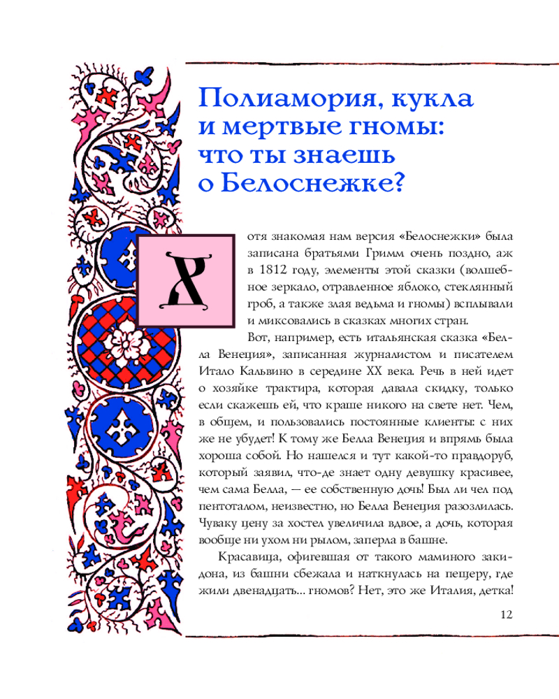Книга полностью цветная, с яркими иллюстрациями внутри, оформлена в стиле средневековых текстов.