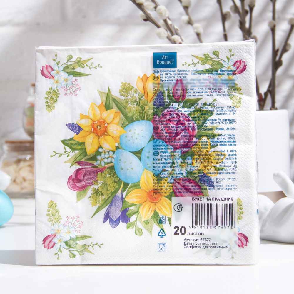 Гармония цвета Салфетки бумажные «Букет на праздник»В данный момент этот товар отсутствует в продаже. Возможно, у нас найдется аналогичный или похожий товар здесь. Серия: Пасха Салфетки станут отличным украшением праздничного стола! Изделия из двуслойной бумаги с ярким принтом добавят сервировке красочных ноток и дополнят антураж. Эта деталь придётся по душе всем гостям, которые непременно почувствуют сказочный эффект правильно организованного торжества! Салфетки бумажные с рисунком абсолютно безопасны и нетоксичны. |