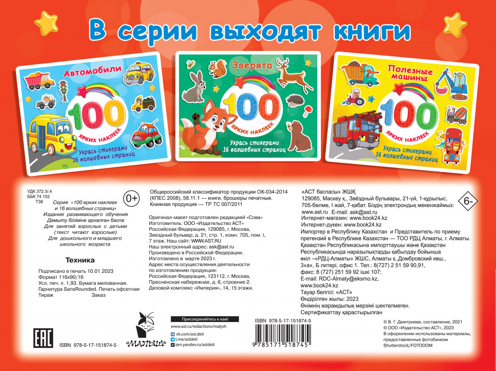Серия: 100 ярких наклеек и 16 волшебных страниц «Техника» — это книжка с наклейками, которая позволит вашему ребёнку с головой окунуться в удивительный мир транспорта. Увлекательные задания и игры со стикерами помогут компании мальчишек потренировать мелкую моторику, развить интеллект и воображение, проявить смекалку. |