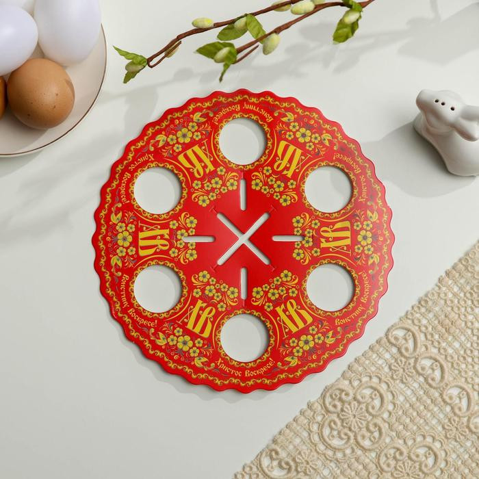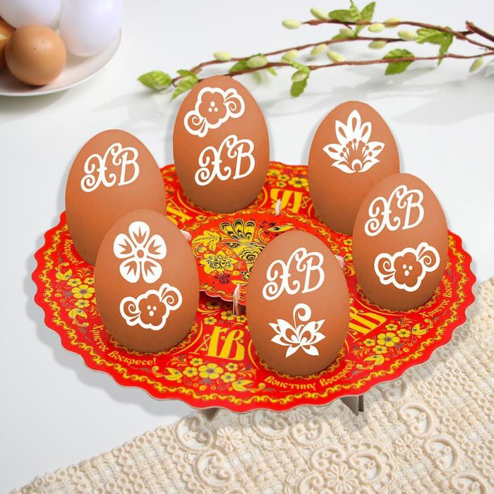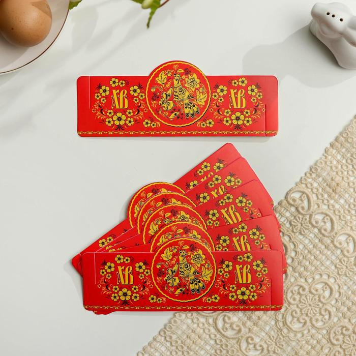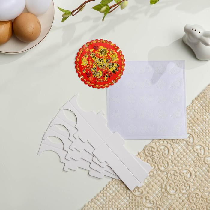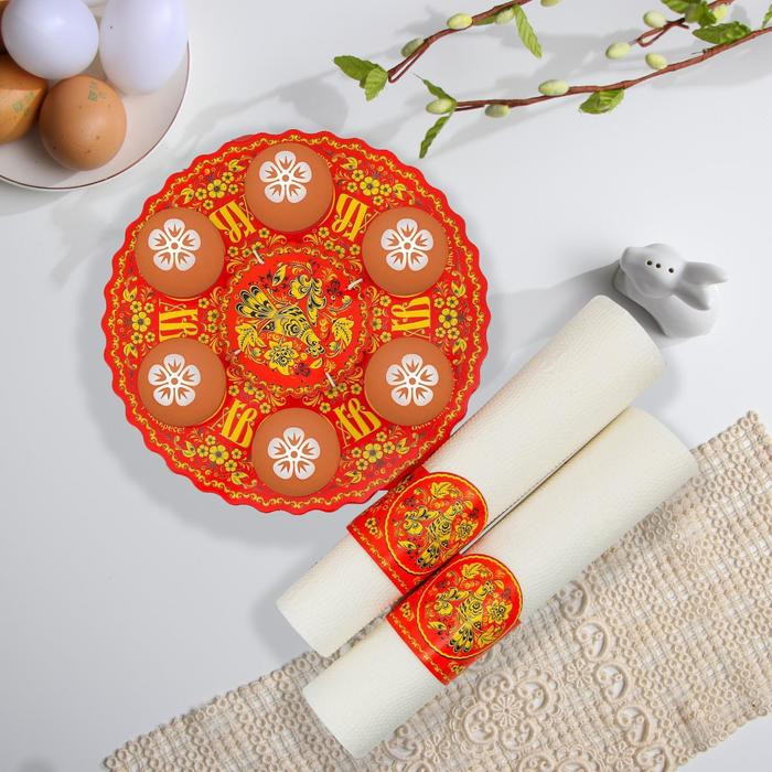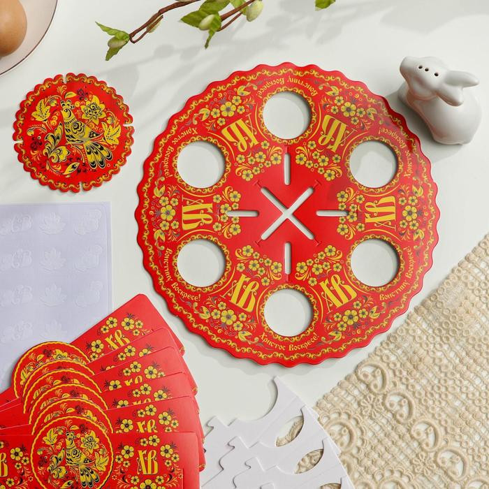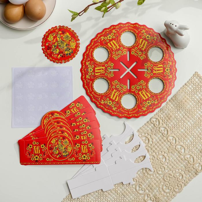 Семейные традиции Пасхальный набор для сервировки стола «Хохлома» Подставка картонная на 6 яиц - 1 шт., наклейки - 1 лист, кольца для салфеток - 6 шт.-25%