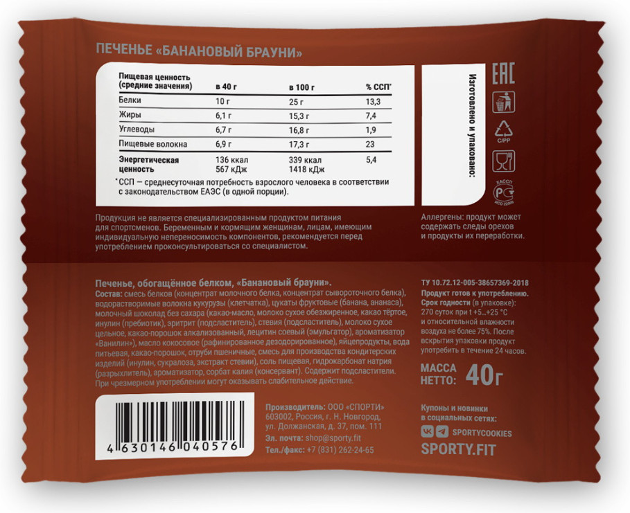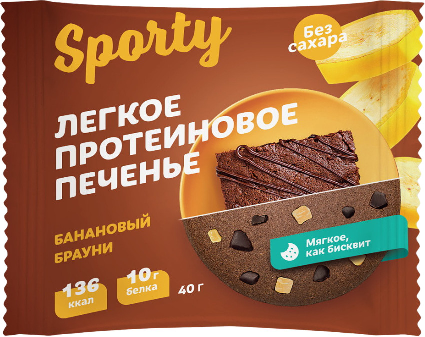 Sporty Печенье протеиновое без сахара «Банановый брауни»