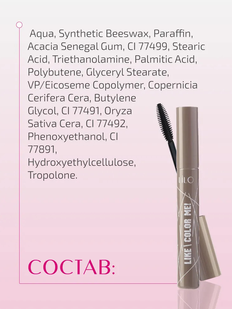 LiLo Тушь для ресниц «Like me! Color me!», оттенок КоричневыйВ данный момент этот товар отсутствует в продаже. Возможно, у нас найдется аналогичный или похожий товар здесь. Like me! Color me! Тушь для ресниц для создания изысканного объема и удлинения. Тушь для ресниц, которая оправдывает все ожидания. Мягкая эластичная текстура прекрасно наносится, обволакивая каждую ресничку и обеспечивая невероятную стойкость без осыпания. Удобная силиконовая щетка делает нанесение легким и эффективным. Максимальный объем, удлинение и абсолютное разделение — все, что нужно, чтобы придать взгляду выразительность. |