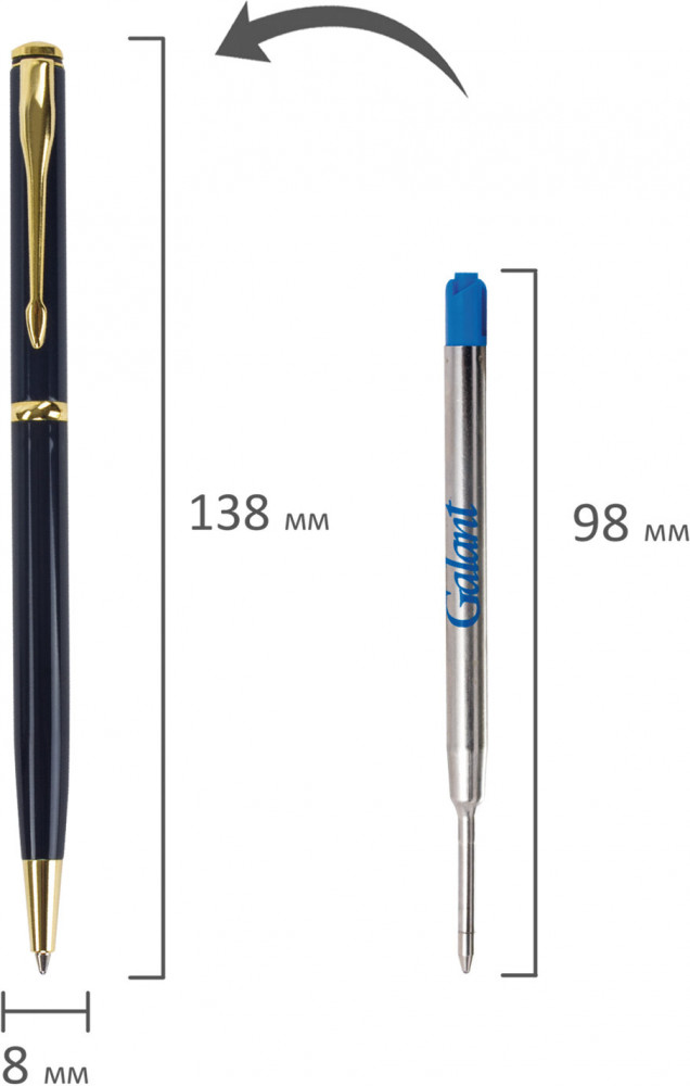 Серия: Arrow Изящная ручка Galant «Arrow Chrome» станет отличным подарком к любому празднику или событию, подчеркнет статус и изысканность вкуса владельца. Корпус ручки темно-синего цвета выполнен из латуни, детали корпуса — золотого цвета. Синий цвет чернил, длина стержня составляет 98 мм, а диаметр пишущего узла — 0,7 мм. Поставляется в индивидуальном подарочном футляре. Подходит для гравировки. Стиль и изысканность, роскошь и практичность, совершенство снаружи и внутри — всем этим требованиям достойно отвечает продукция Galant. |