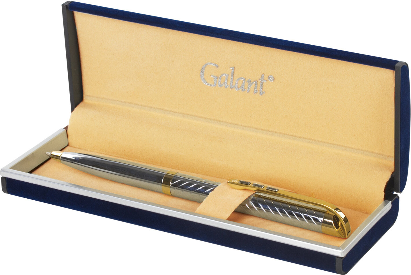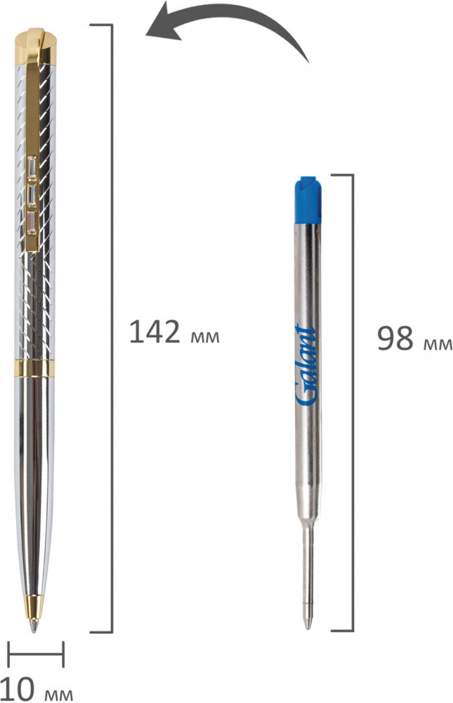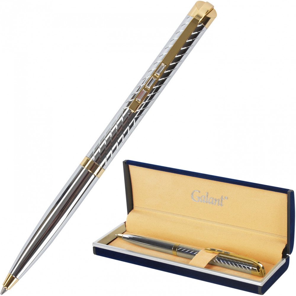 Элегантная ручка Galant «Barendorf» станет отличным подарком к любому празднику или событию, подчеркнет статус и изысканность вкуса владельца. Корпус ручки серебристого цвета выполнен из латуни с хромированным покрытием и декорирован позолоченными деталями. Поставляется в индивидуальном подарочном футляре. Подходит для гравировки. Стиль и изысканность, роскошь и практичность, совершенство снаружи и внутри — всем этим требованиям достойно отвечает продукция Galant. |