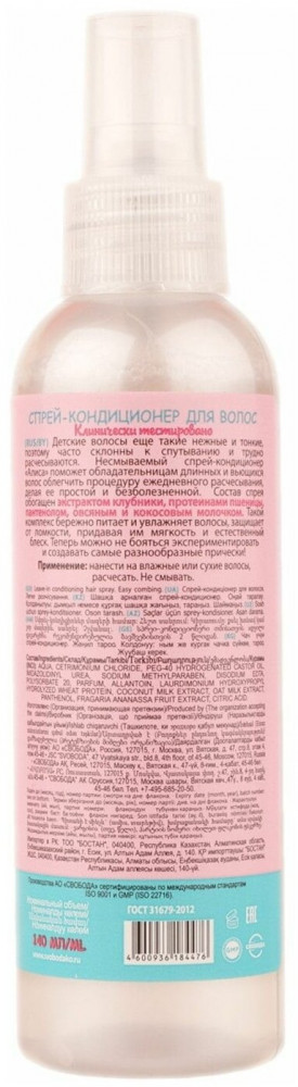 Алиса Спрей-кондиционер для волос детский-35% облегчает расчёсывание не утяжеляет приятный запах подходит детям хорошая упаковка