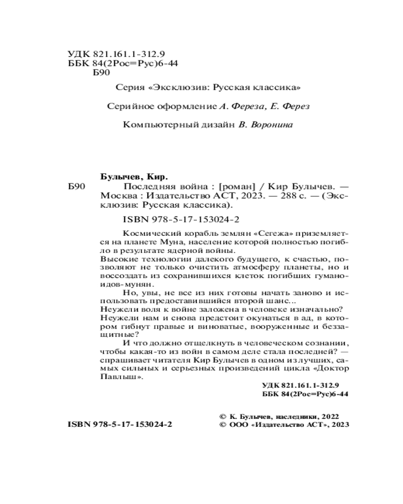 Серия: Эксклюзив: Русская классика Космический корабль землян «Сегежа» приземляется на планете Муна, население которой полностью погибло в результате ядерной войны. |