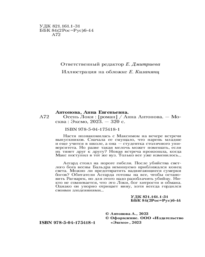 💳 Оплатить за товар можно при получении 🇰🇿 Есть бесплатная доставка по Казахстану 🎁 Копите бонусы с каждой покупки Серия: Мир нерассказанных историй. Романы Анны Антоновой Имена скандинавских богов Тора, Одина и Локи знают все. Анна Антонова рассказывает их историю по-новому, находя свежие краски и неожиданные решения. Расследование убийства, случившегося в Асгарде, причудливым образом провоцирует захватывающие события в жизни обычных столичных студентов. Напряженный драматический сюжет, развивающийся в мире суровых северных богов, органично переплетается с судьбой наших современников, в жизни которых вдруг проявляется то, чему они не могут найти реалистичного объяснения. |