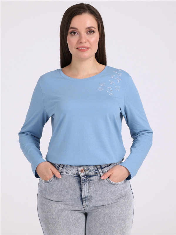 Симпатичный лонгслив выполнен из легкого хлопкового полотна. Изделие с длинными рукавами, округлым вырезом горловины, украшено стильной вышивкой. Актуальный дизайн делает его незаменимым предметом женского гардероба!