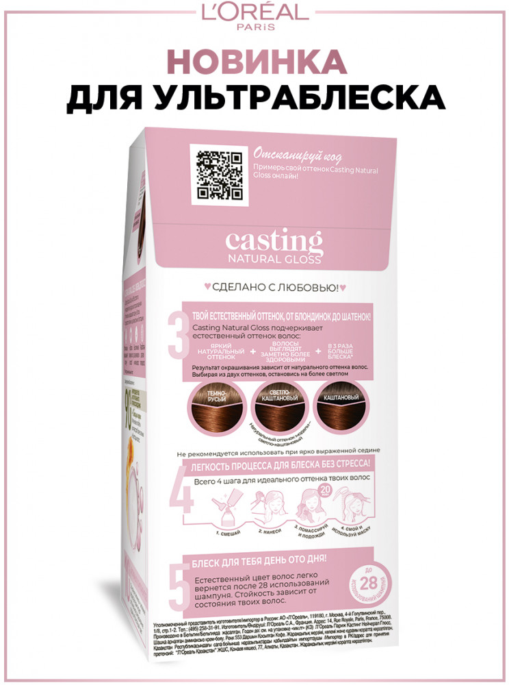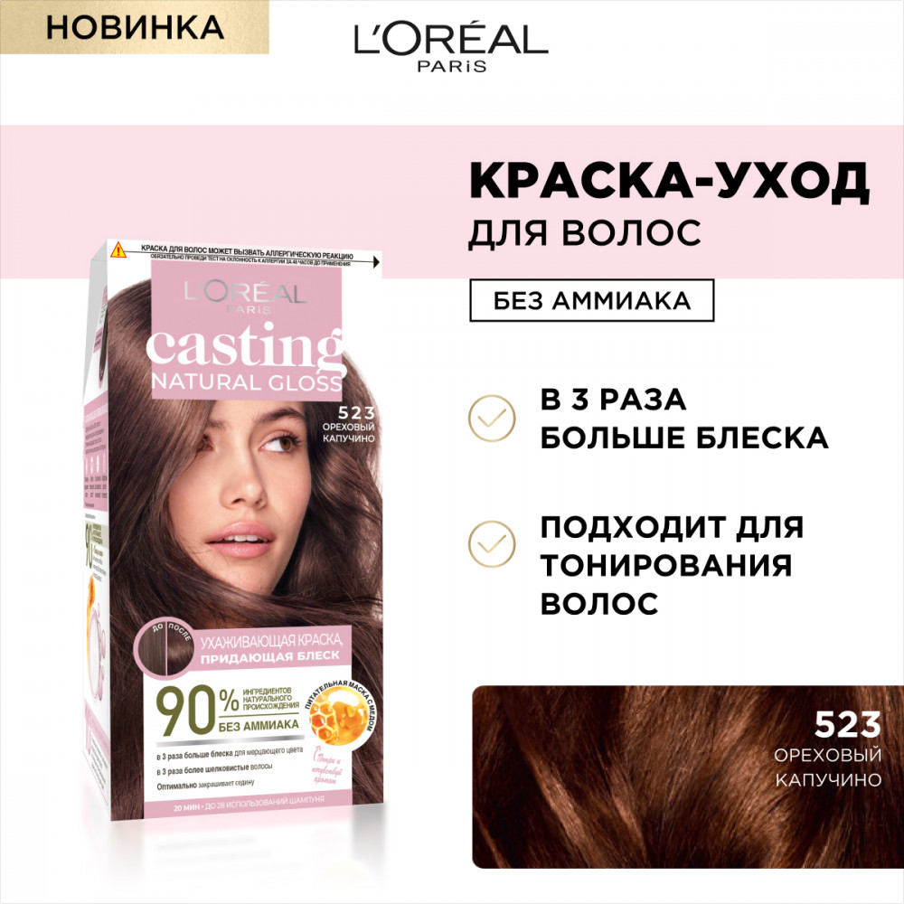 L'Oreal Paris Краска для волос без аммиака «Casting Natural Gloss», оттенок 523 Ореховый капучино