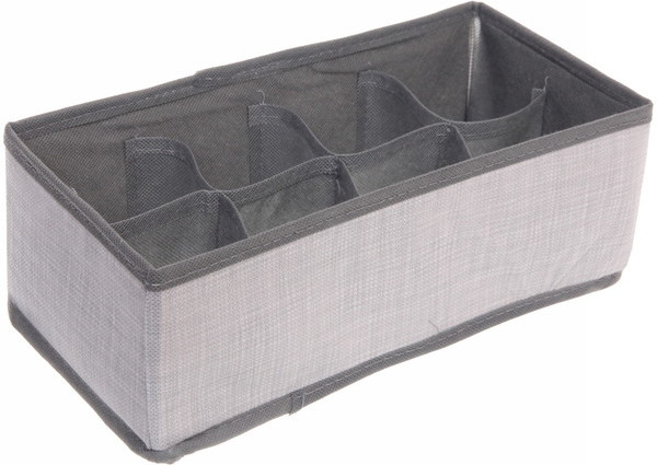 Органайзер с мягкими перегородками без крышки поможет упорядочить размещение нижнего белья, и носков. Органайзер гармонично смотрится в современном гардеробе. Мягкие перегородки образуют 8 секций и позволяют аккуратно разместить вещи внутри органайзера. Органайзер легко складывается и раскладывается.