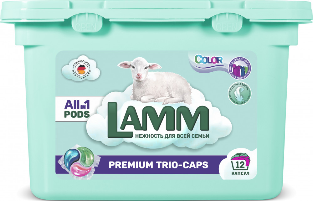 Капсулы для стирки Lamm с пониженным пенообразованием и биодобавками эффективно и бережно отстирывают белые и цветные изделия из хлопчатобумажных, льняных и синтетических тканей, а также тканей из смешанных волокон в стиральных машинах любого типа.