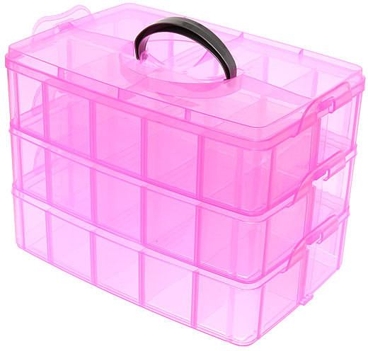 Что может быть лучше, чем аккуратная и организованная рабочая зона? В её создании вам поможет специальный контейнер. Он имеет три яруса и разделён на отсеки, куда вы сможете разложить отдельные детали или аксессуары. Контейнер-органайзер предназначен для хранения и транспортировки материалов для создания украшений (бисер, бусины, фурнитура), рыболовных снастей (грузики, крючки) и других мелких деталей.