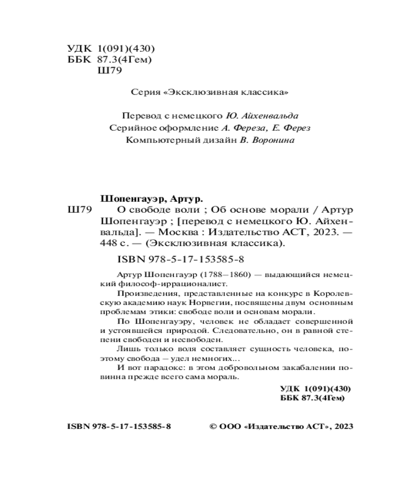 О свободе воли. Об основе морали+58 легко читается качество шикарно