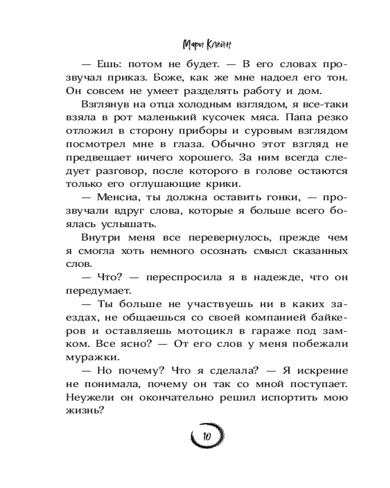 Хоккей был моей жизнью, моей мечтой. Но когда я очнулся на больничной кровати, ничего не осталось. Я выкарабкался благодаря врачам, однако от хоккея пришлось отказаться. Моя девушка бросила меня, и я возненавидел каждого, кто пытался со мной заговорить. Агрессия, которая раньше проявлялась только на льду, теперь стала частью моей жизни. Мне нужно было найти способ избавиться от нее, и я вступил в банду байкеров. Здесь я встретил Менсию. Она подарила мне сочувствие и поддержку. А что я могу ей дать, кроме озлобленности и боли? |