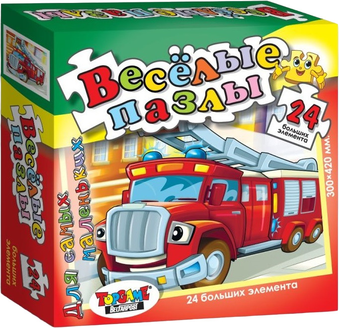 TopGame Пазл «Пожарная машинка»В данный момент этот товар отсутствует в продаже. Возможно, у нас найдется аналогичный или похожий товар здесь. Серия: Веселые пазлы Пазл развивает мелкую моторику рук, способствует развитию образного и логического мышления, внимания, легко научит вашего малыша различать отдельные элементы по цвету, форме, а также правильно воспринимать связь между частью и целым. |