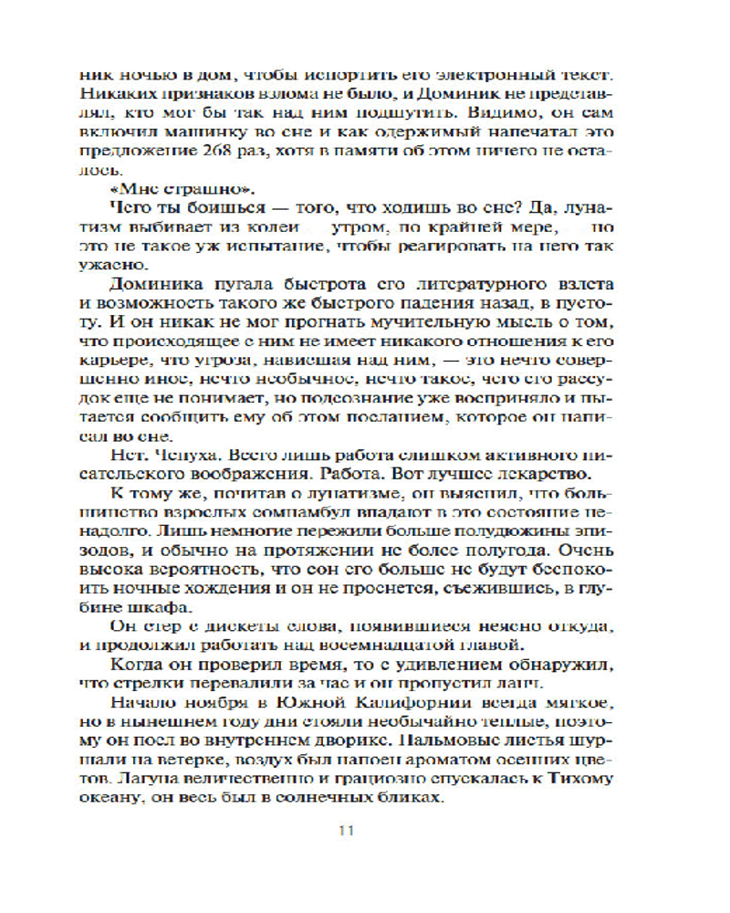 ЧужиеВ данный момент этот товар отсутствует в продаже. Возможно, у нас найдется аналогичный или похожий товар здесь. Серия: The Big Book (мягкая обложка) США. Недавнее прошлое. Несколько человек в разных местах страны страдают от необъяснимых недугов: Доминик, писатель, — от лунатизма, Джинджер, врач в больнице при Колумбийском университете, — от кратких отключений сознания, священник Брендан теряет веру — правда, взамен обретает дар целительства, Эрни, в прошлом морпех, прошедший Вьетнам, поражен боязнью темноты. Всех их объединяет одно: прошлым летом все они останавливались в мотеле «Транквилити», штат Невада. Там-то и начались все их личные неприятности. Похоже, кто-то сознательно вычистил из их памяти события, в которых они участвовали... |